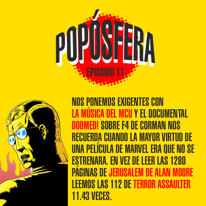 Nos ponemos exigentes con la música del MCU y el documental Doomed! sobre F4 de Corman nos recuerda cuando la mayor virtud de una película de Marvel era que no se estrenara. En vez de leer las 1280 páginas de Jerusalem de Alan Moore leemos las 112 de Terror Assaulter 11.43 veces.