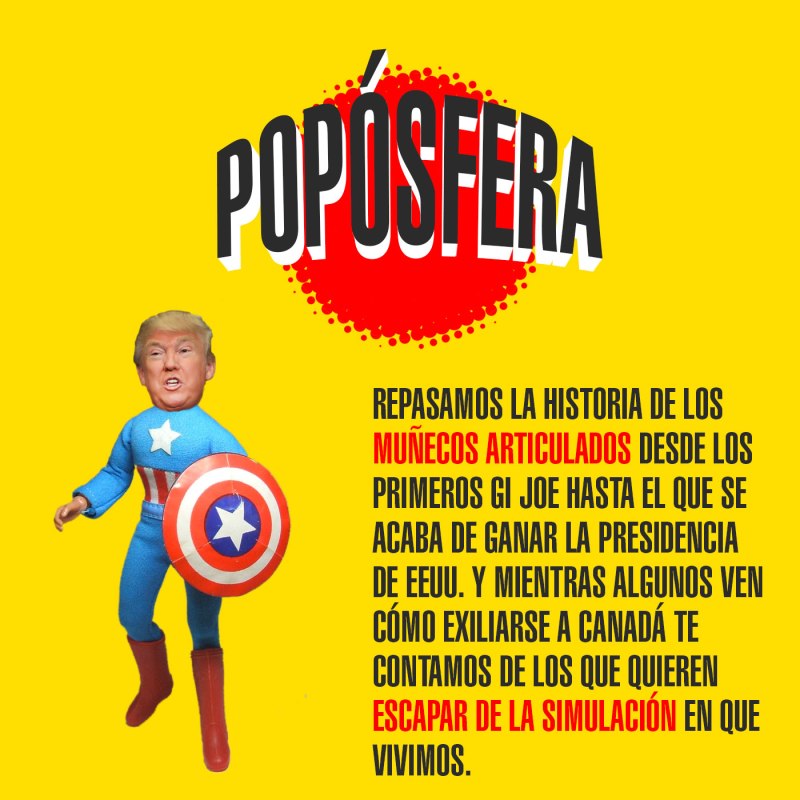 Repasamos la historia de los muñecos articulados desde los primeros GI Joe hasta el que se acaba de ganar la presidencia de EEUU. Y mientras algunos ven cómo exiliarse a Canadá te contamos de los que quieren escapar de la simulación en que vivimos.