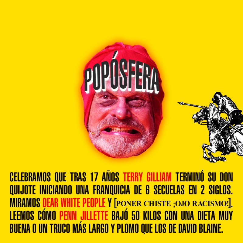 Celebramos que tras 17 años Terry Gilliam terminó su Don Quijote iniciando una franquicia de 6 secuelas en 2 siglos. Miramos Dear White People y [PONER CHISTE ¡OJO RACISMO!]. Leemos cómo Penn Jillette bajó 50 kilos con una dieta muy buena o un truco más largo y plomo que los de David Blaine.