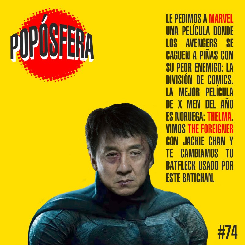 Le pedimos a Marvel una película donde los Avengers se caguen a piñas con su peor enemigo: la división de comics. La mejor película de X Men del año es noruega: Thelma. Vimos The Foreigner con Jackie Chan y te cambiamos tu Batfleck usado por este Batichan.