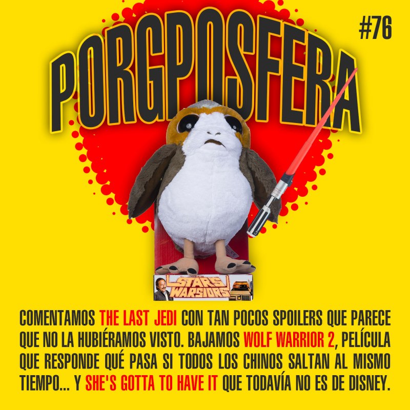 Comentamos The Last Jedi con tan pocos spoilers que parece que no la hubiéramos visto. Bajamos Wolf Warrior 2, película que responde qué pasa si todos los chinos saltan al mismo tiempo… y She’s gotta to have it que todavía no es de disney.